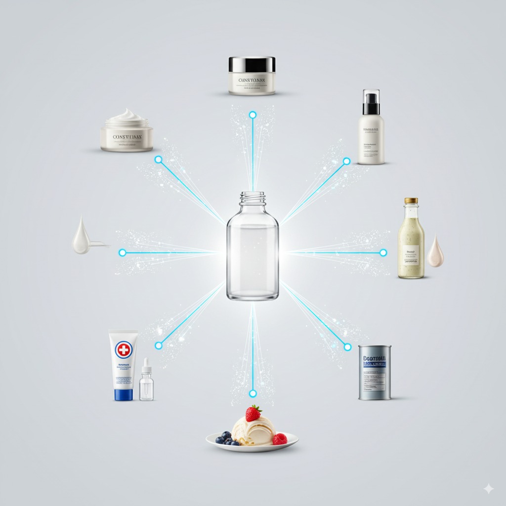 Largement utilisé dans les formulations alimentaires, cosmétiques, pharmaceutiques et industrielles.