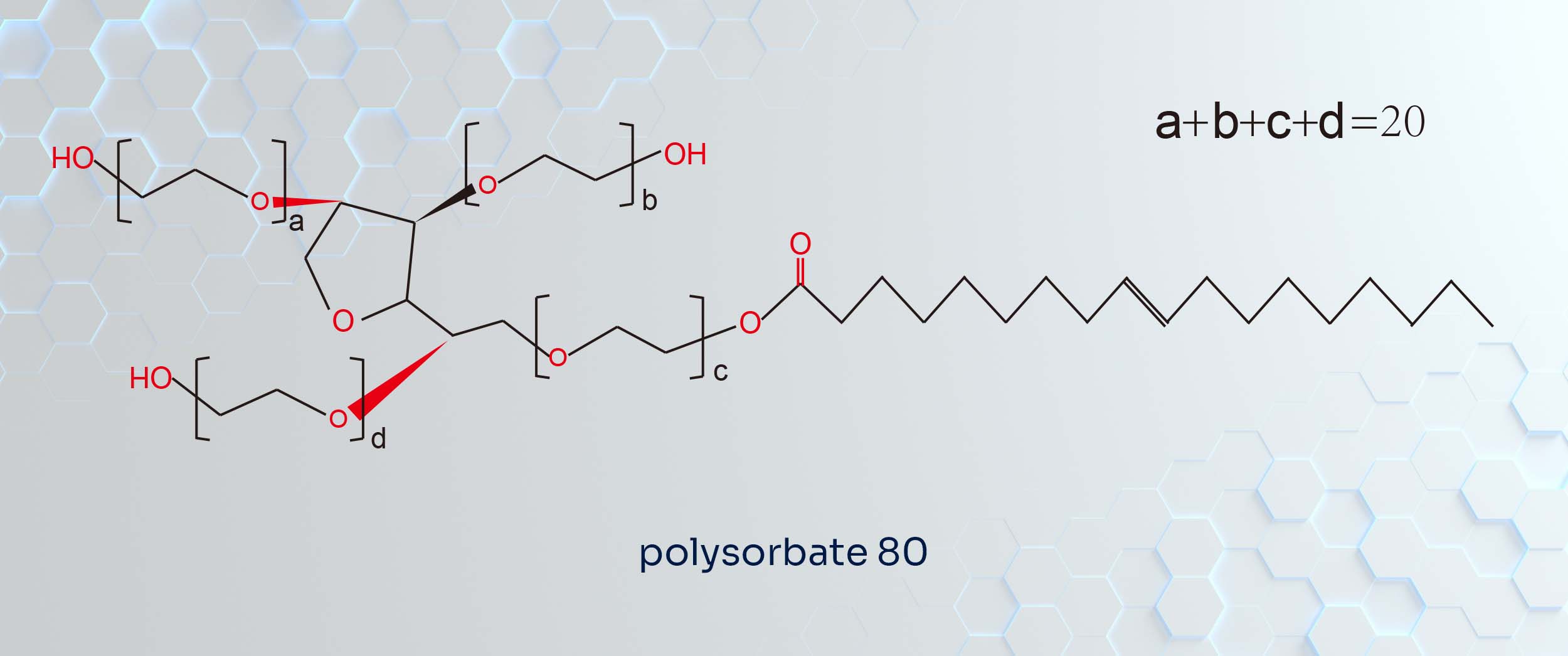 Le polysorbate 80 est un émulsifiant non ionique de qualité alimentaire, produit par éthoxylation du monooléate de sorbitan. Il associe du sorbitan, de l'acide oléique (un acide gras monoinsaturé) et de l'oxyde d'éthylène.