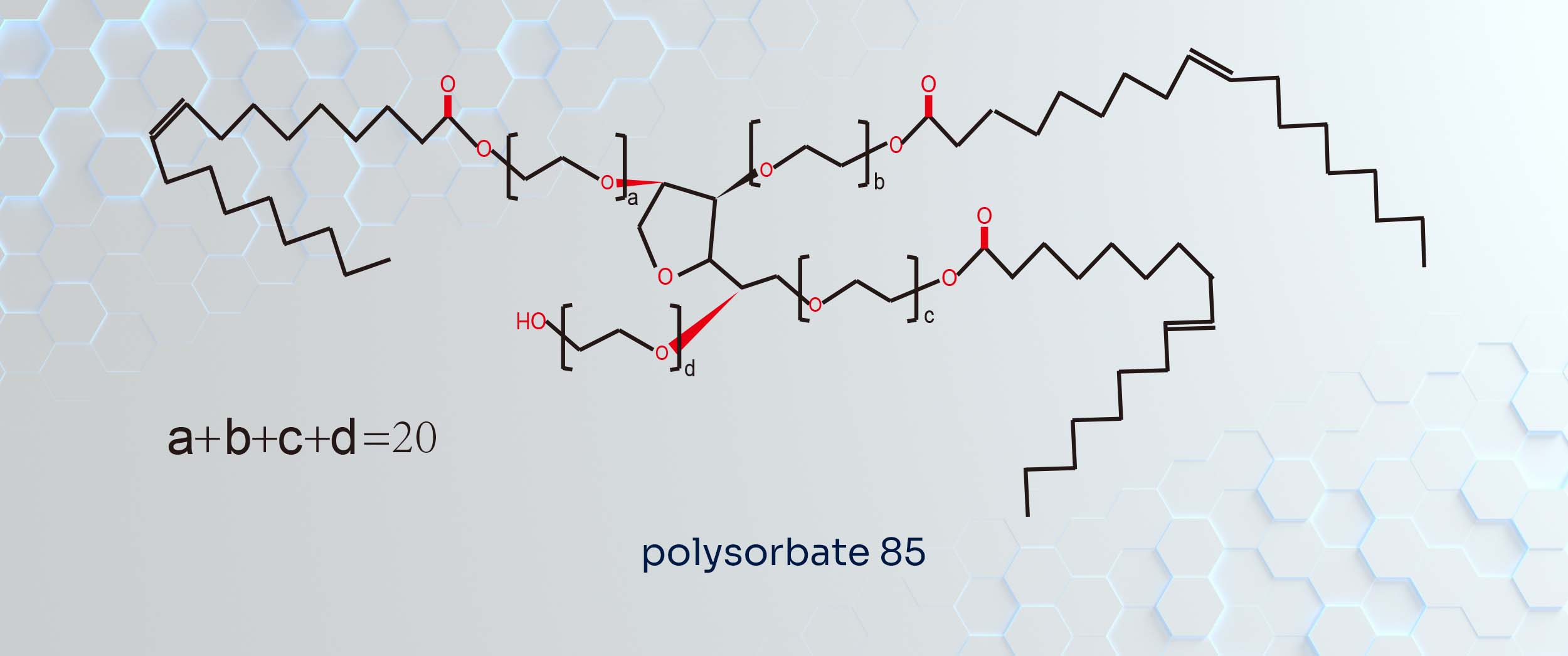 Polysorbate 85 is a non-ionic emulsifier obtained by ethoxylating polyoxyethylenated sorbitan esters of fatty acids. It belongs to the polysorbate series—hydrophilic, non-ionic surfactants formed through sorbitol (or sorbitan) reaction with ethylene oxide and fatty acids. Exhibiting good water affinity and emulsifying performance, Polysorbate 85 is suitable for stabilizing oil-in-water emulsions in various applications.