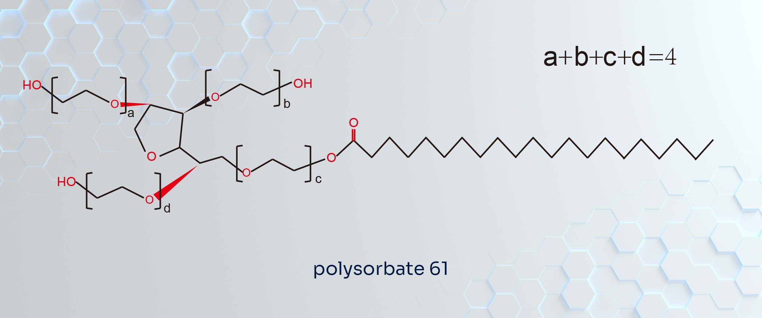 - ★ Mechanism of ActionAmphiphilic Positioning. This structure allows Polysorbate 61 to position itself effectively at the oil–water interface. It significantly reduces surface tension and stabilizes emulsions.